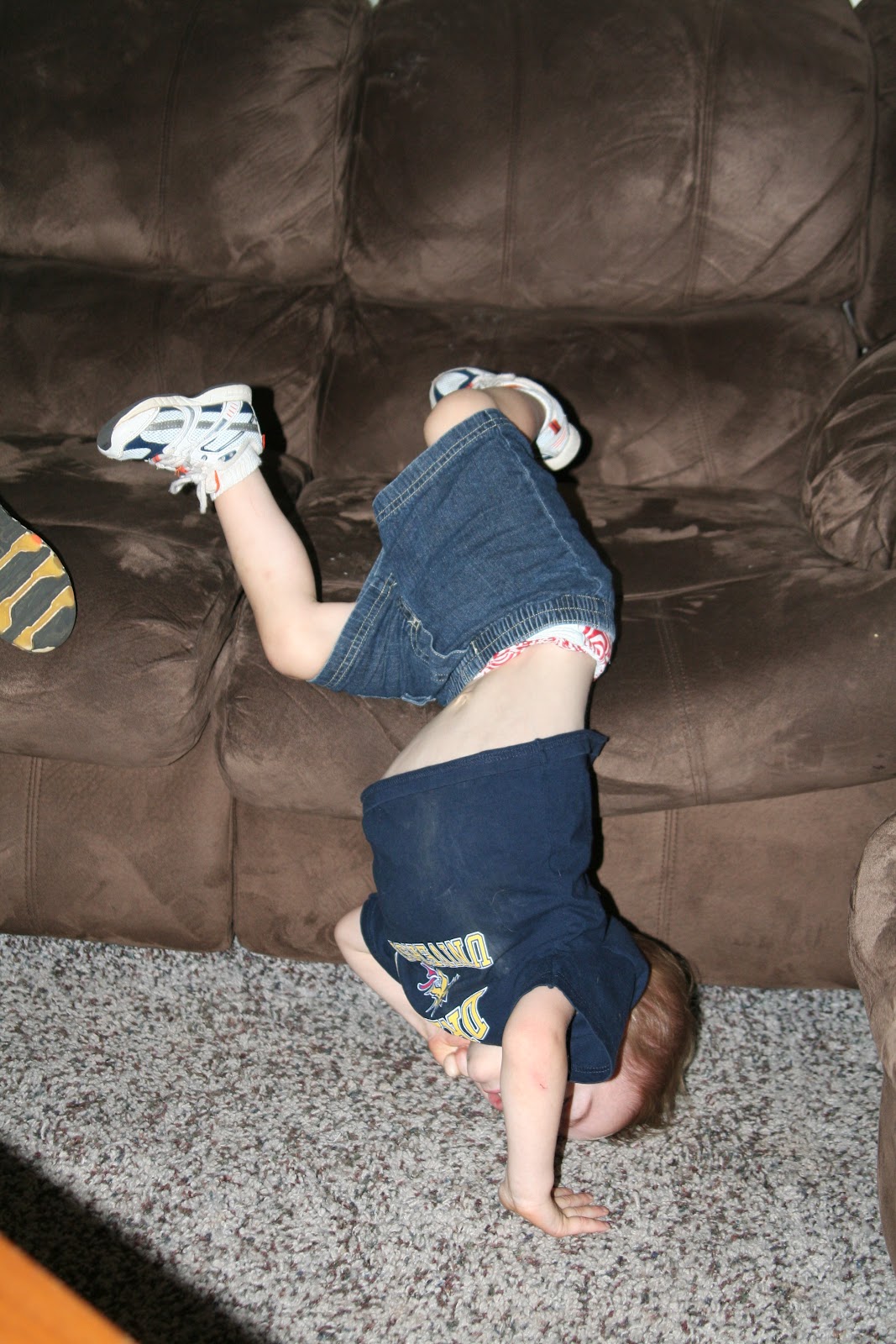 I swear. Checking on this child every night is an adventure. This night he had not only put on his sneakers, but had also taken off his pull-up and put on a pair of shorts . . . inside-out, of course.
