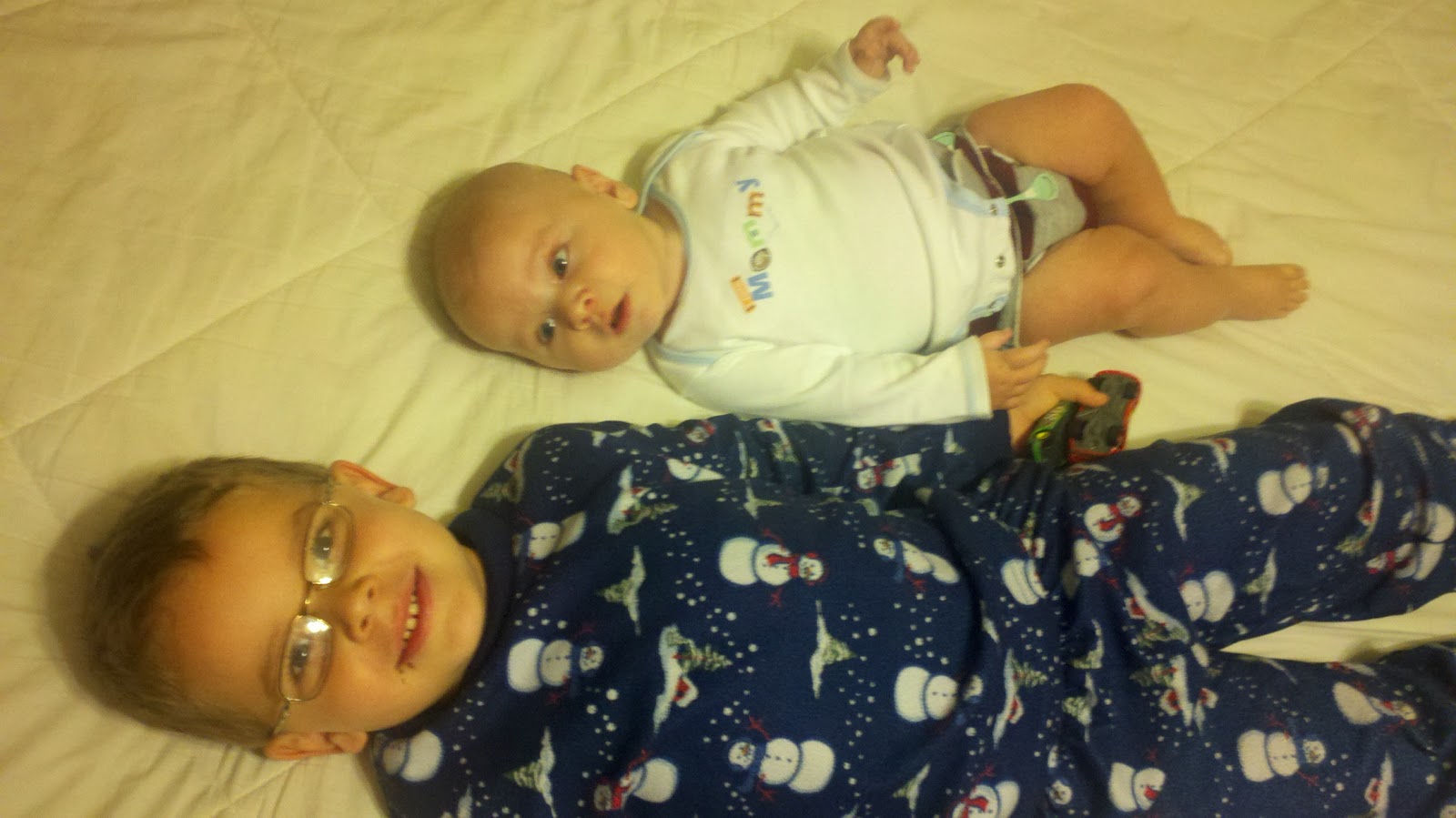 The other night, I discovered that Easton's first tooth had finally come through, so everyone, of course, had to check it out.  Hudson decided {multiple times!} he needed to check out Mommy's "new toof".  ha!